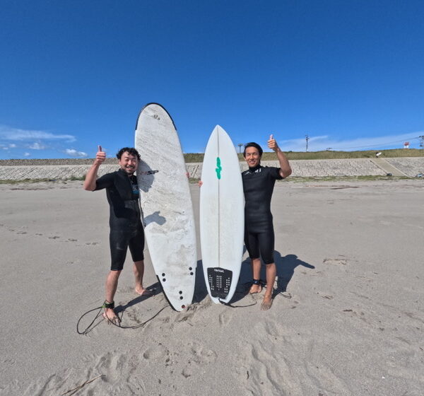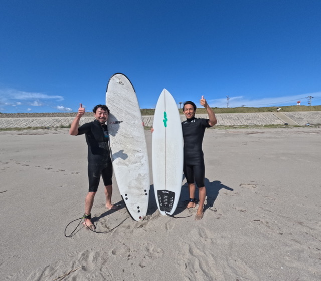 - フリーサーフィンで実戦(仙台新港には、オーナーもサーフィンしているので海で直接アドバイスをもらえる)